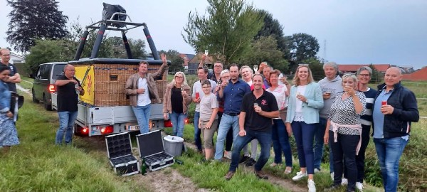 Une fois la montgolfière rangée, nous prenons le temps de célébrer. Souvent, un magnifique coucher de soleil ou une atmosphère paisible accompagne ce moment. Nous partageons un verre de bulles ou une boisson fraîche avec tous les participants – y compris les conducteurs des véhicules suiveurs. Enfin, vous recevez un souvenir personnalisé pour garder en mémoire votre vol en montgolfière.
