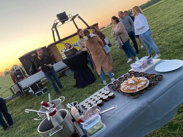 Vivez le vol en montgolfière à son plus haut niveau d’excellence lors de notre vol en montgolfière VIP CulinAIRe. Avant le décollage, vous profitez d’un apéritif raffiné avec amuse‑bouches, pendant que la montgolfière est préparée.